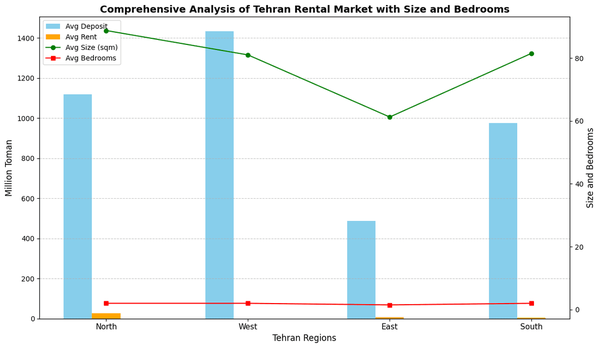 بازار رهن و اجاره تهران در مناطق مختلف همچنان نوسان دارد؛ میانگین رهن واحدهای مسکونی در شمال تهران بیش از دو برابر جنوب و شرق است، در حالی که متوسط متراژ و تعداد خواب نیز تفاوت قابل توجهی بین مناطق نشان میدهد.