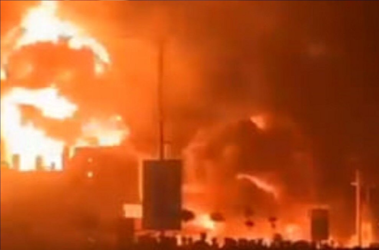 این انفجار شدید به آتش سوزی گسترده در این منطقه منجر شده است.