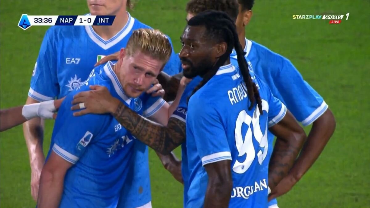 کوین دیبروینه به دلیل مصدومیت بعد از گل اول ناپولی جای خود را به ماتیاس اولیویرا داد./۳۶۰
