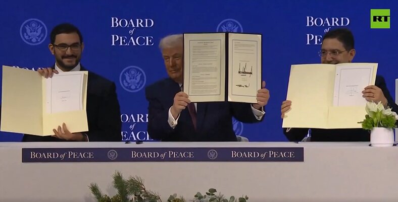 رئیس جمهور آمریکا و شماری از سران کشورها منشور «شورای صلح غزه» را در مراسمی در داووس امضا کردند. منبع: RT