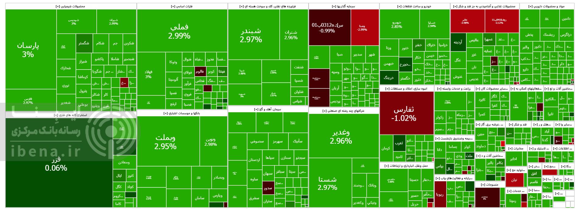 در این روز به ترتیب نمادهای فارس، پارسان، فملی و فولاد بیشترین تاثیر مثبت را بر شاخص کل بازار سرمایه داشتند و عامل رشد بازار سرمایه شدند.