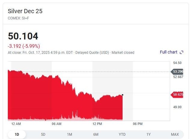 در همین حال، نقره نیز افت شدیدی را تجربه کرد و با کاهش ۵ درصدی به محدوده ۵۰ دلار در هر اونس رسید.