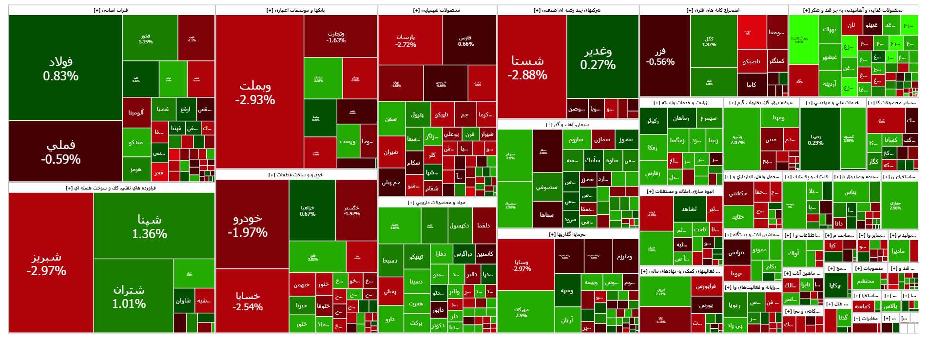 در مقابل نمادهای وبملت و پارسان بیشترین تاثیر منفی را بر شاخص کل بازار سهام برجای گذاشتند.