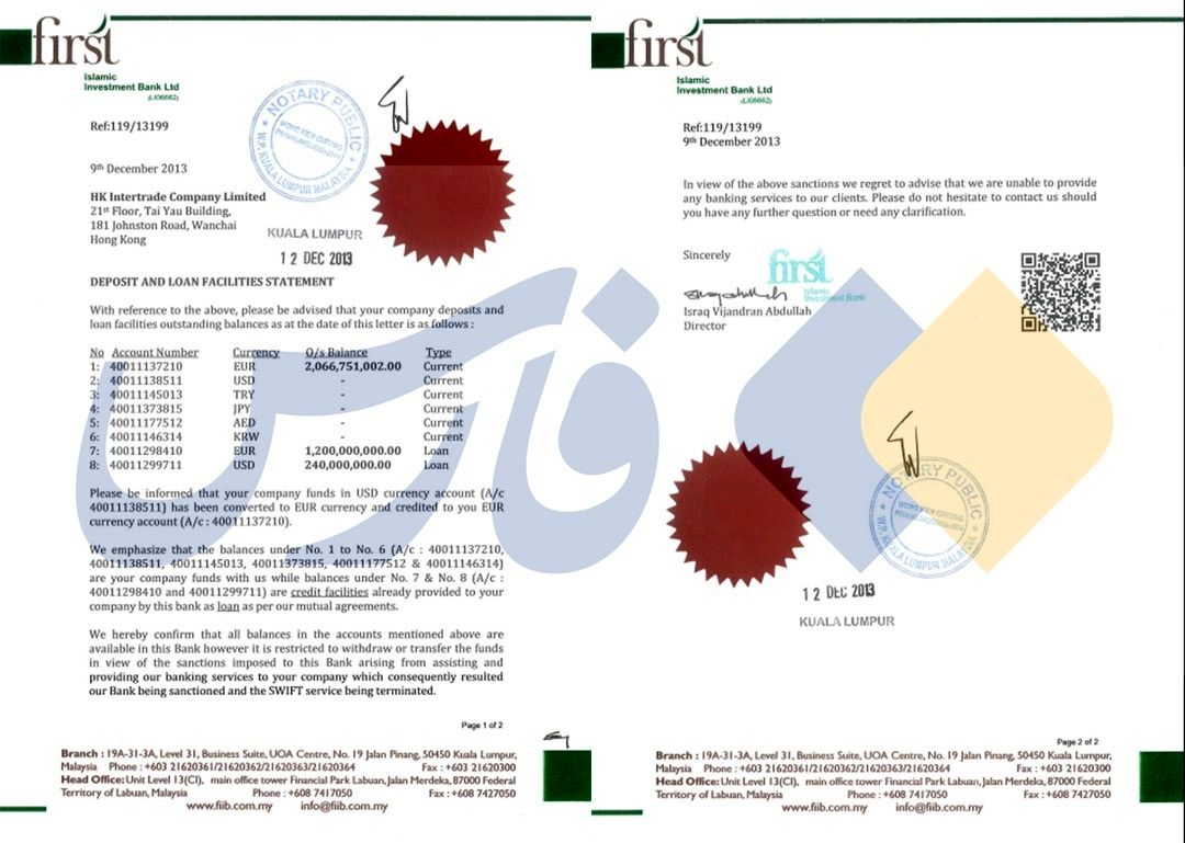 رای نهایی ۲۷ سپتامبر ۲۰۲۱ هیئت داوری بین المللی دادگاه لاهه مبنی بر شکایت شرکت کرسنت (Crescent Gas Corporation) از شرکت ملی نفت ایران (NIOC) به میزان مبلغ ۲.۹ میلیارد دلار با رای نهایی عالی دادگاه مالایا در کوالالامپور مالزی اجرا شد و طی اجرای این حکم مبلغ ۲.۳۰۵ میلیارد دلار جهت خسارت شرکت کرسنت از اموال شرکت ملی نفت ایران که در بانک FIIB متعلق به بابک زنجانی مالزی بود، برداشت شد.