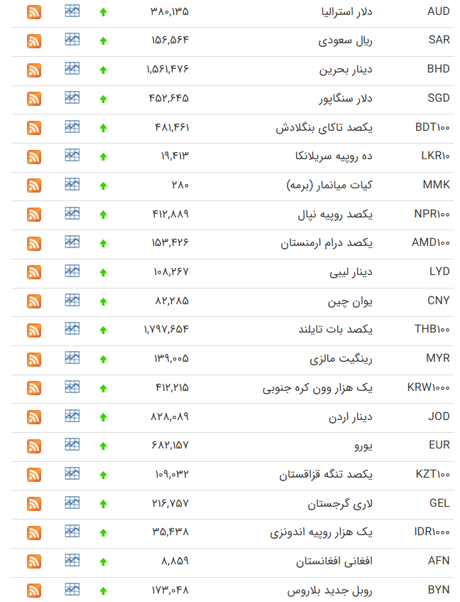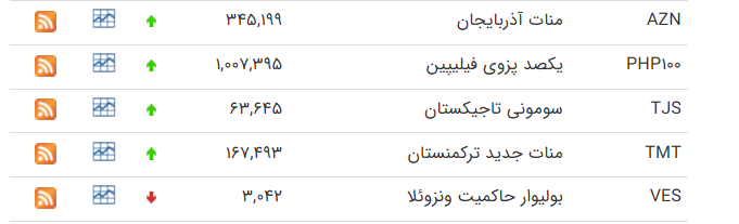 از سوی دیگر، اسکناس درهم امارات نیز با کاهش نسبت به روز کاری گذشته، ۱۹ هزار و ۷۱۱۷ تومان ارزشگذاری شده است و نرخ حواله درهم نیز ۱۹ هزار و ۱۴۲ تومان است.