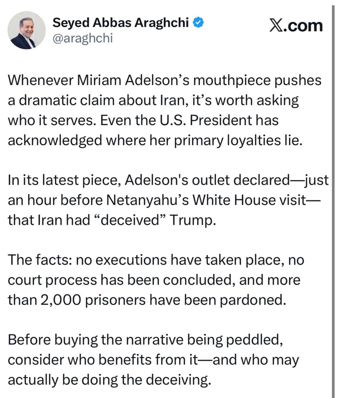 رسانه ادلسون در تازهترین مطلب خود، تنها یک ساعت پیش از دیدار نتانیاهو در کاخ سفید اعلام کرد که ایران ترامپ را «فریب داده» است.