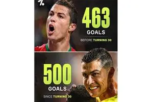 رونالدو در ۴۱ سالگی در اوج دوران فوتبالی خود به سر می برد به طوریکه او تا قبل از ۳۰ سالگی ۴۶۳ گل به ثمر رسانده است این درحالی است که بعد از ۳۰ سالگی موفق به زدن ۵۰۰ گل شده است.