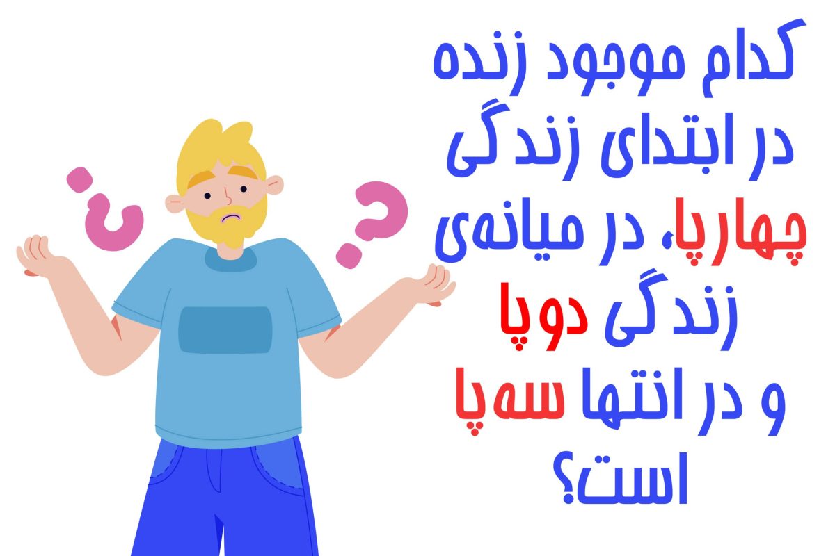 چیستان: کدام موجود زنده در ابتدای زندگی چهارپا، در میانه زندگی دوپا و در انتها سه پا است؟